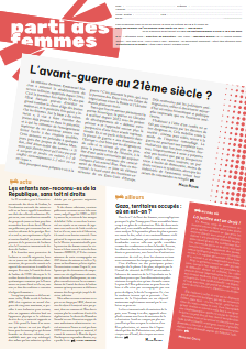 Parti des femmes est un journal papier animé et écrit par des femmes, qui propose une analyse féministe et antiraciste de l’actualité généraliste.